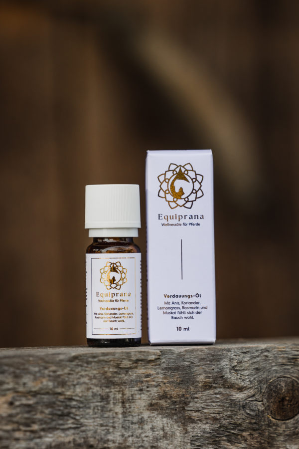Mischung aus ätherischen Ölen für Pferde – für das allgemeine Wohlbefinden und zur Unterstützung des Verdauungstraktes.